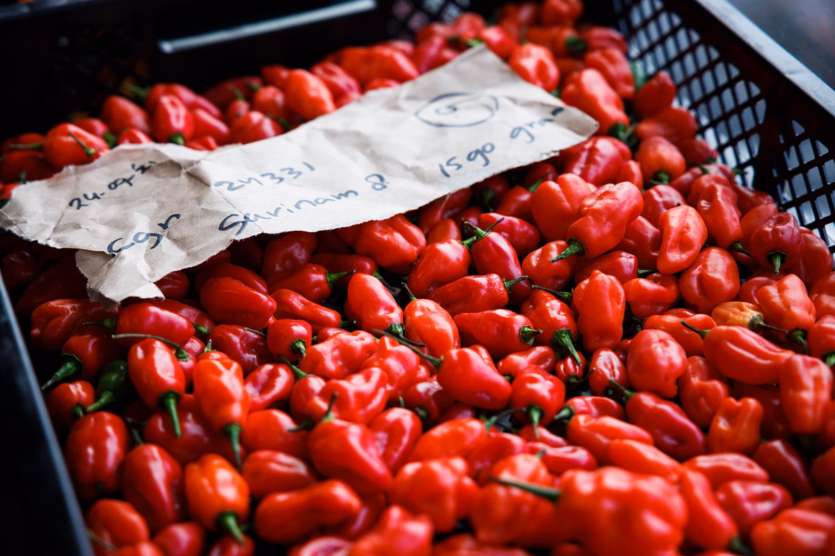 This Sweet Spicy Soy Sauce is flavored with sugar, extracted from locally harvested sugar beets, sesame seeds and Madam Jeanette peppers.