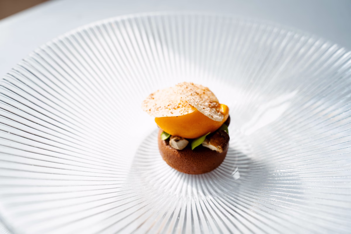''The inspiration for this dish came from the sea buckthorn berries that grow between Renesse and Burgh Haamstede. The combination with the shiitake, chocolate and Tomasu Sweet Spicy Soy Sauce gives a delicious bitter touch and umami taste.''