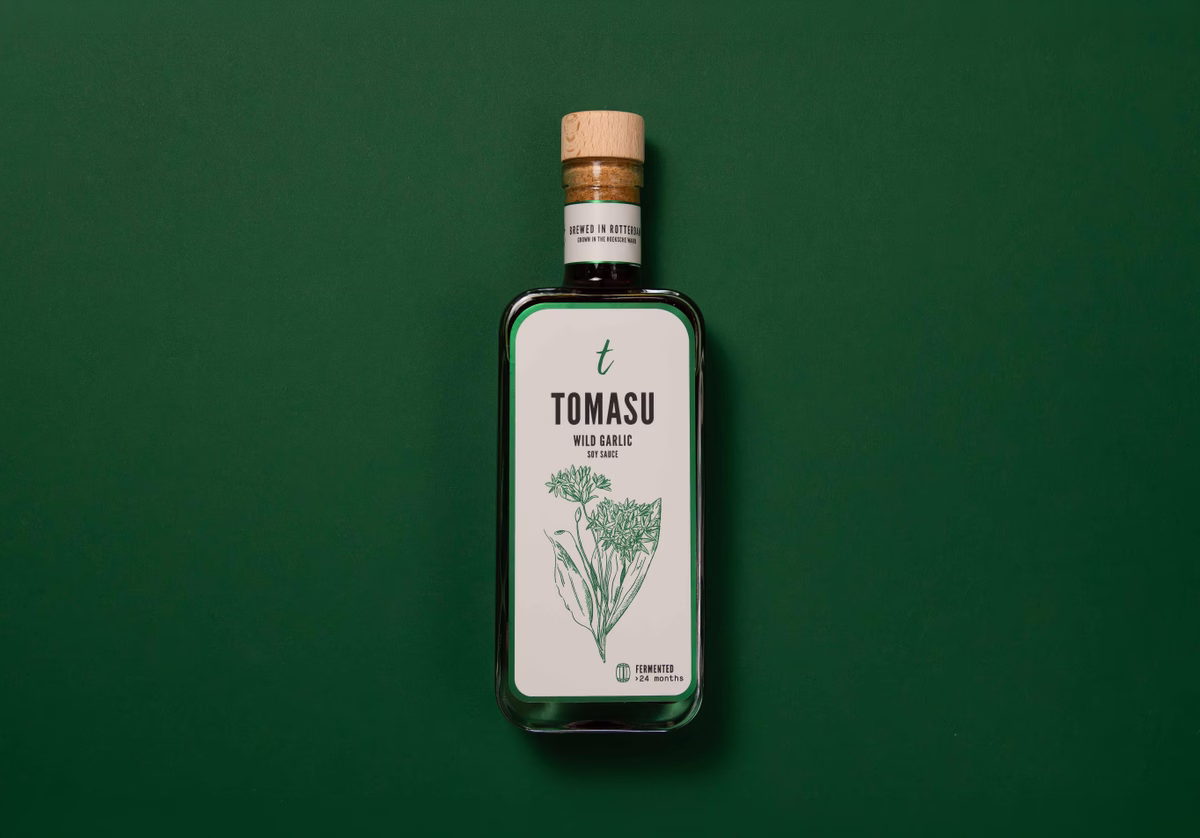 Wild garlic has a quality that's hard to describe. It's green, alive and a little wild, but it also has a depth that develops over time. We were curious what would happen if we let it sit with our soy sauce, just long enough for the two to find each other. That's exactly what we tried. The wild garlic has been resting in our barrel for a year now, slowly becoming part of the soy sauce. This year, we added a second round of fresh leaves to the batch to bring back some freshness. Our way of trying to capture a bit of spring in a bottle.