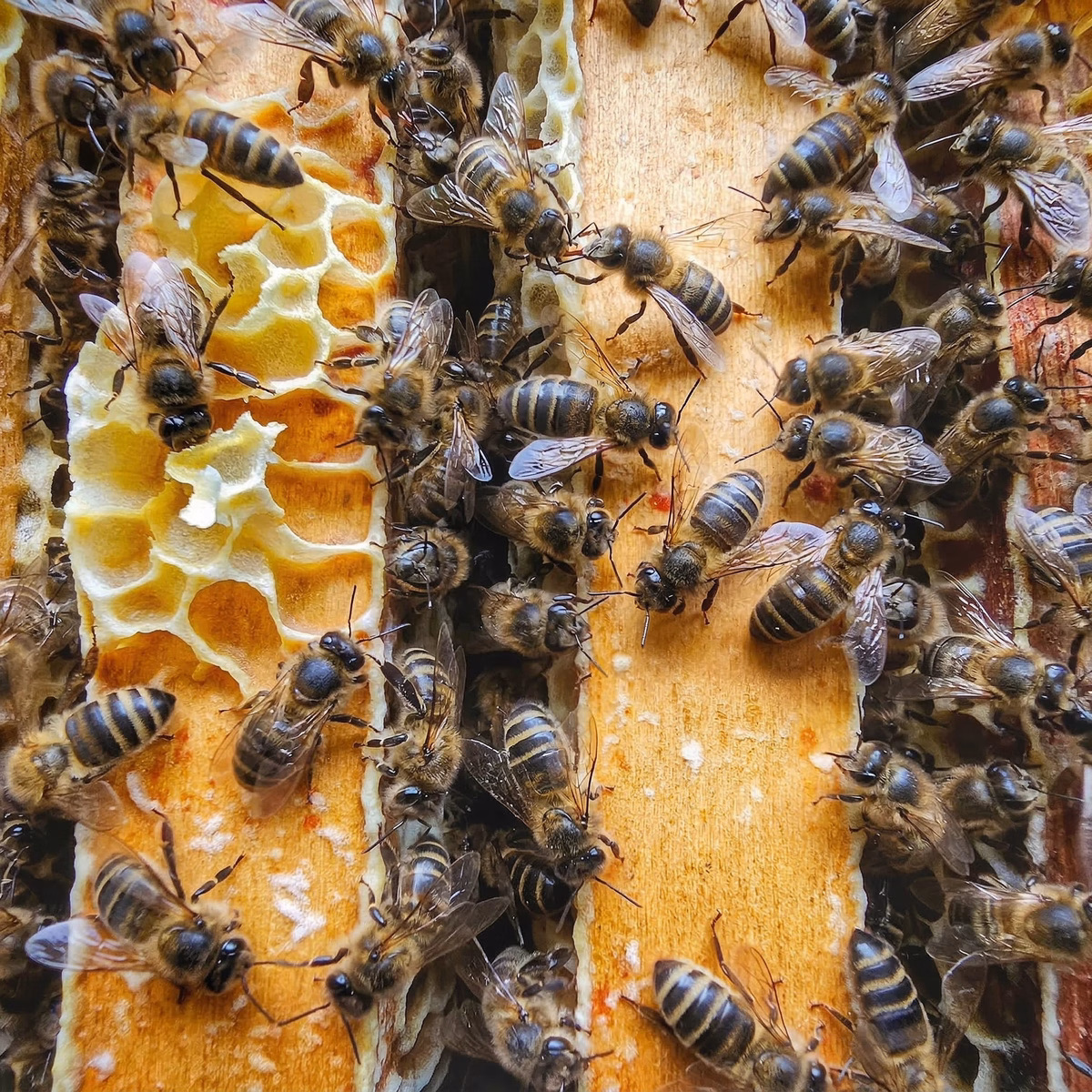 Four years ago, we launched our first Honey Soy Sauce. A seasonal release, made with locally harvested honey. Piet is, as you might know, our brewer. But next to that, he is also a beekeeper. Together with his brother-in-law and sister he looks after two large bee hives. Quite a busy bee, you might say. It made perfect sense to position the hives on and around one of the farms we work with.