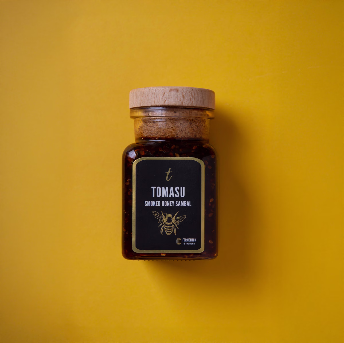 The result is a soy sauce with a lot going on, but hopefully in a way that feels subtle. Sweet from honey. Heat from pepper. Depth from smoke. The Madame Jeanette peppers and sesame seeds used in this infusion didn’t go to waste either, they formed the base of our Smoked Honey Sambal, where those same flavors develop further into something bolder. All built on our signature soy sauce which, by herself, is the reason we still do what we do.